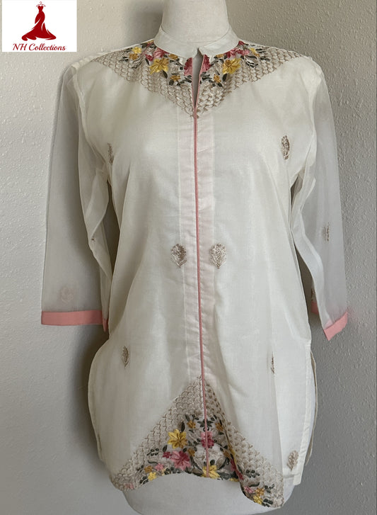 • Women's off-white organza blouse with mandarin collar in 2XL