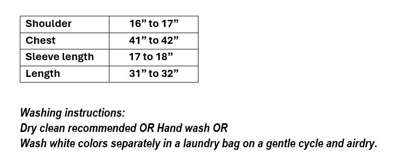 Work : Thread embroidery on neckline, cuffs, and hem